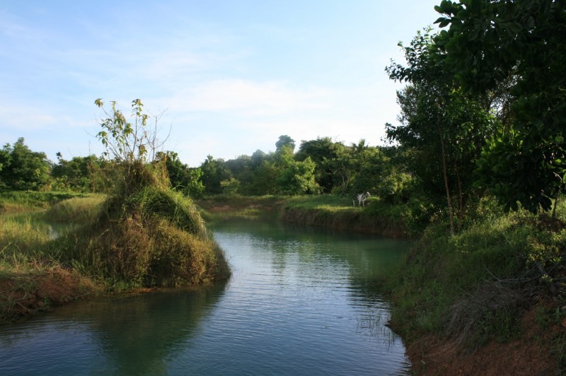 Old maps of our area show a body of water near the resort and, as is usual in Thailand, the villages are named after the landscape, so the biggest village back then was called White Water lake (Nong Nam Kao in Thai.) I knew nothing about this four years ago, when our gardener took a guest to visit this place, who was interested in buying land and planting an avocado orchard. It was Mother's Day, August 12, so it was the rainy season. We hadn't walked far when our heels sank into the mud and I noticed reeds and puddles up ahead. We quickly retreated as l realized this land would not be suitable for an avocado orchard.