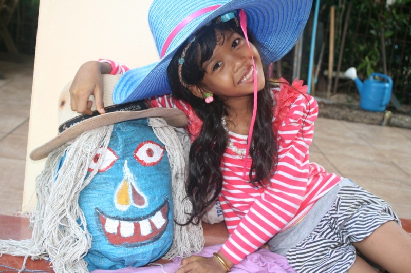 To help guard the young rice at the organic gardens of Faasai Resort and Spa, on the southeast coast of Thailand, guests were invited to help build scarecrows on October 22nd and 23rd to keep away the birds. The resort needs the ″crows″ as the rice has become ″pregnant″ - a Thai way of explaining it is swollen with grain and is now ″smiling″ meaning the flowers have emerged from the stalks - the precursor to the juicy young grains.