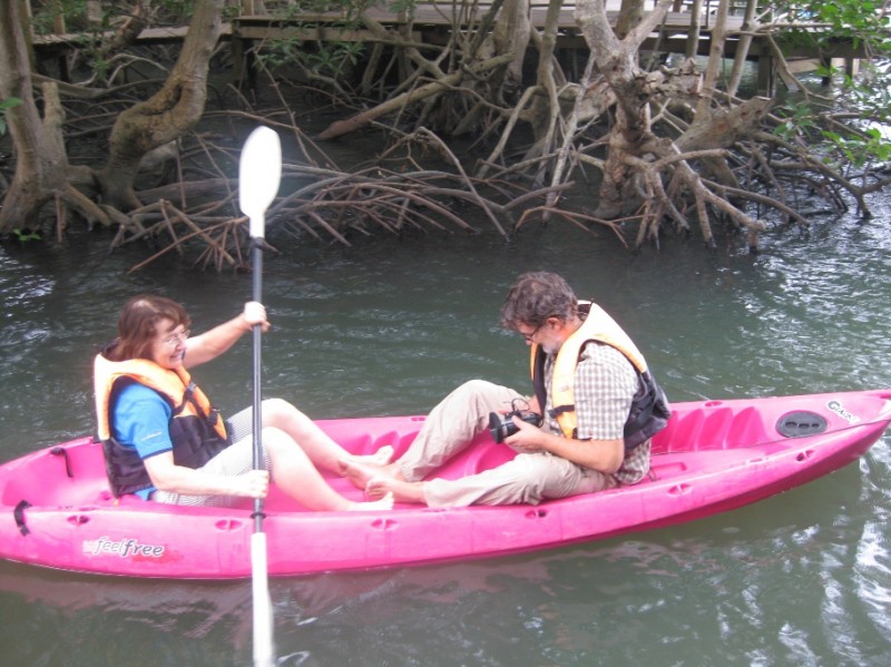 Their stop-off at Faasai was to find out about our local mangroves which protect the land, provide a haven for wildlife and a nursery for the sea. We took them to visit the Kung Kraben Bay Royal Development Study Centre and went kayaking through the mangroves. Scientists Thakorn Kakhaikitthawat and Krissana Chankaew explained to us about the project, which was established by His Majesty the King of Thailand in 1981. It is called a living natural museum where scientists work with the local people, tourists and local businesses to preserve nature and the ecosystem.
