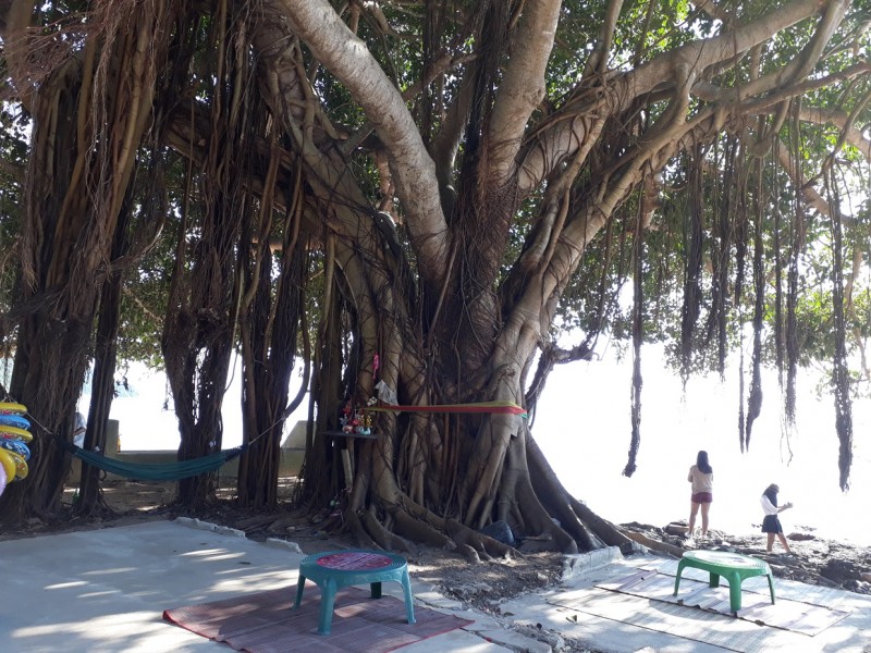 Swimming is not recommended in the monsoon season between May and October as the water is churned up and there is a nasty rip. But outside of this season it is clear and calm and when out in the sea there is a lovely view of the surrounding hills. The distinctive red rocks in some places along the beach appear to be volcanic and have given the sand a golden colour.