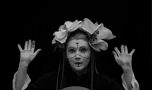 After being trained by Great Butoh masters, she spent seven years in Asia, Indonesia and India improving her knowledge and practice about sacred dances. She was initiated and trained in specific dances from Shamanism, Buddhism and Hinduism which are connected to the spirit of Butoh and its roots, like temple dances from Bali, Manipuri dance or Baul Path.